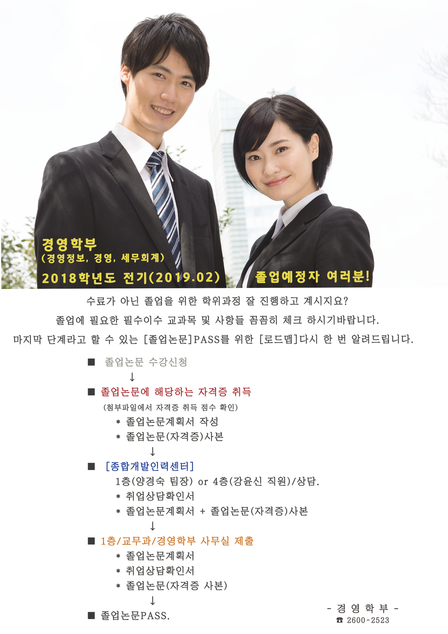 | 경영학과 | 유정숙 | 02-2600-2523 | 02-2600-2532 |