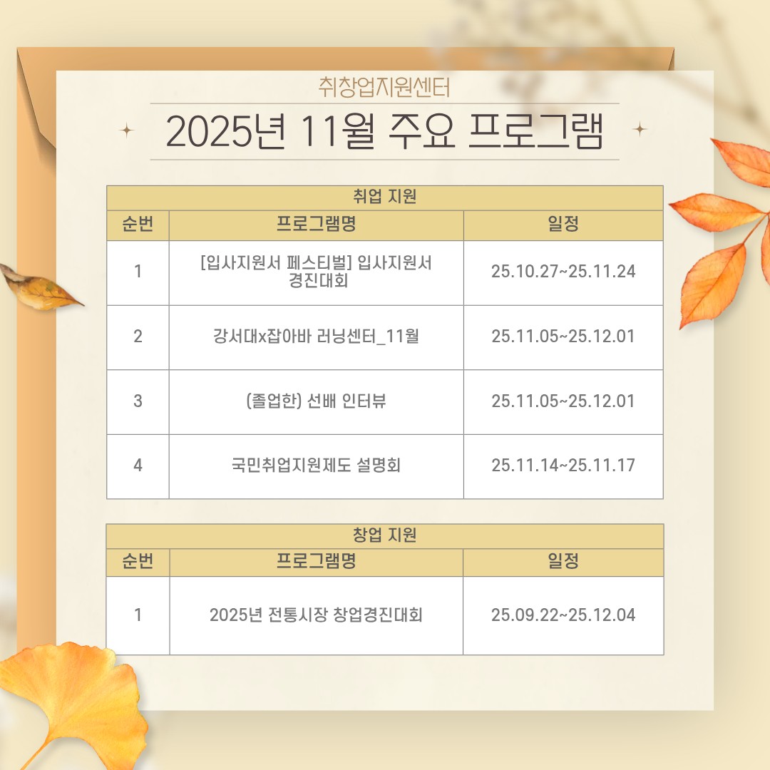 | 제목 | 2025년 11월 주요 프로그램 | ||