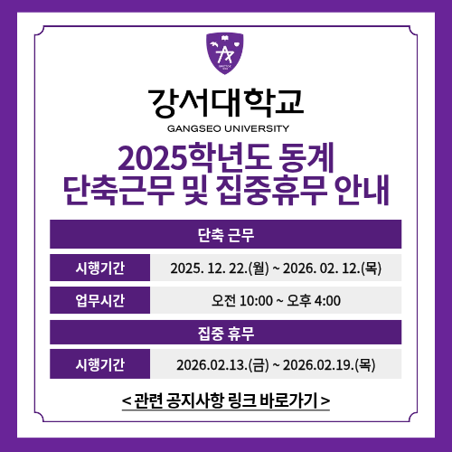 - 2025학년도 동계방학 단축근무 및 집중휴무 안내 2025-12-08