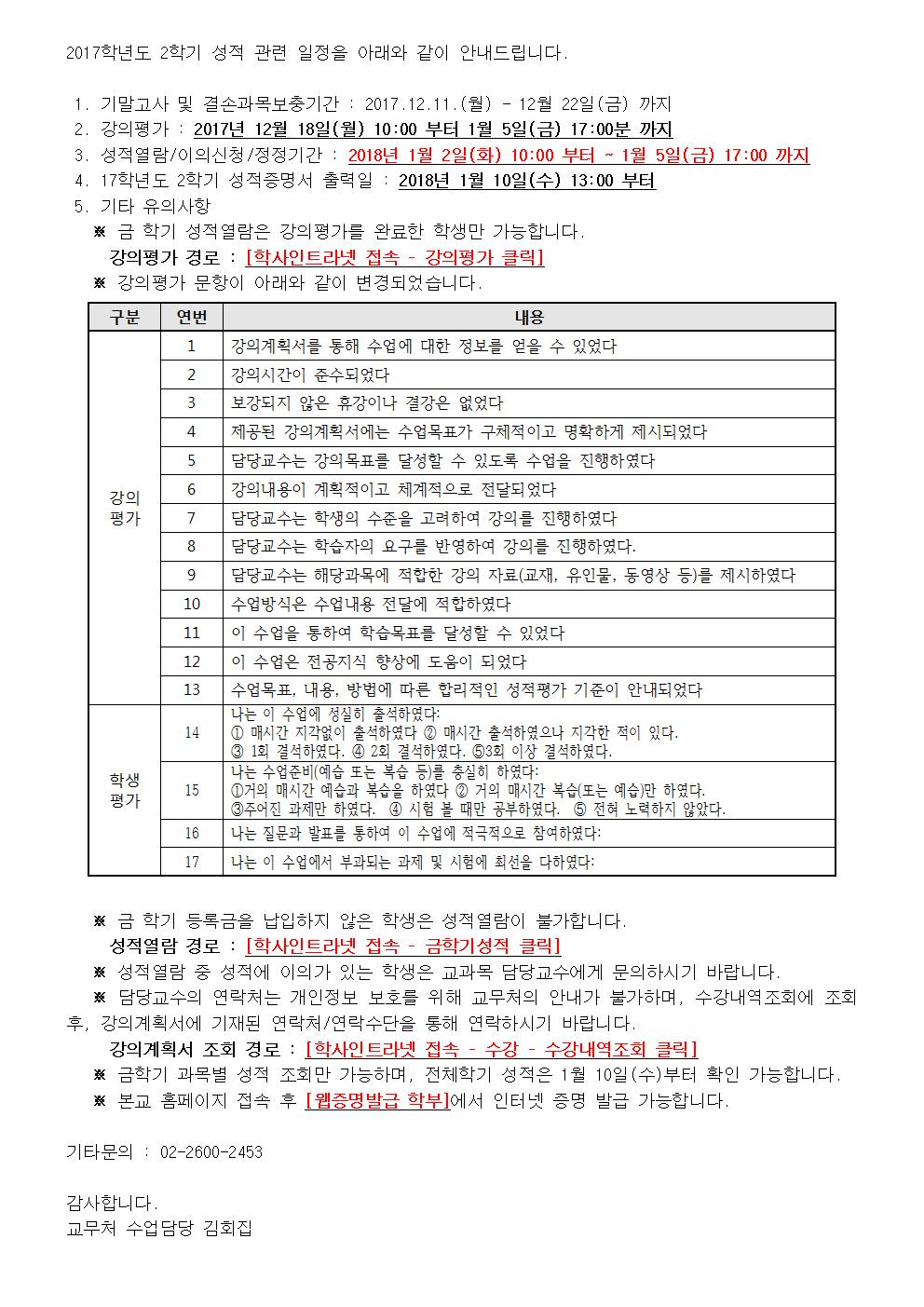 | 제목 | [교무처] 2017학년도 2학기 성적 관련 일정 안내 | ||