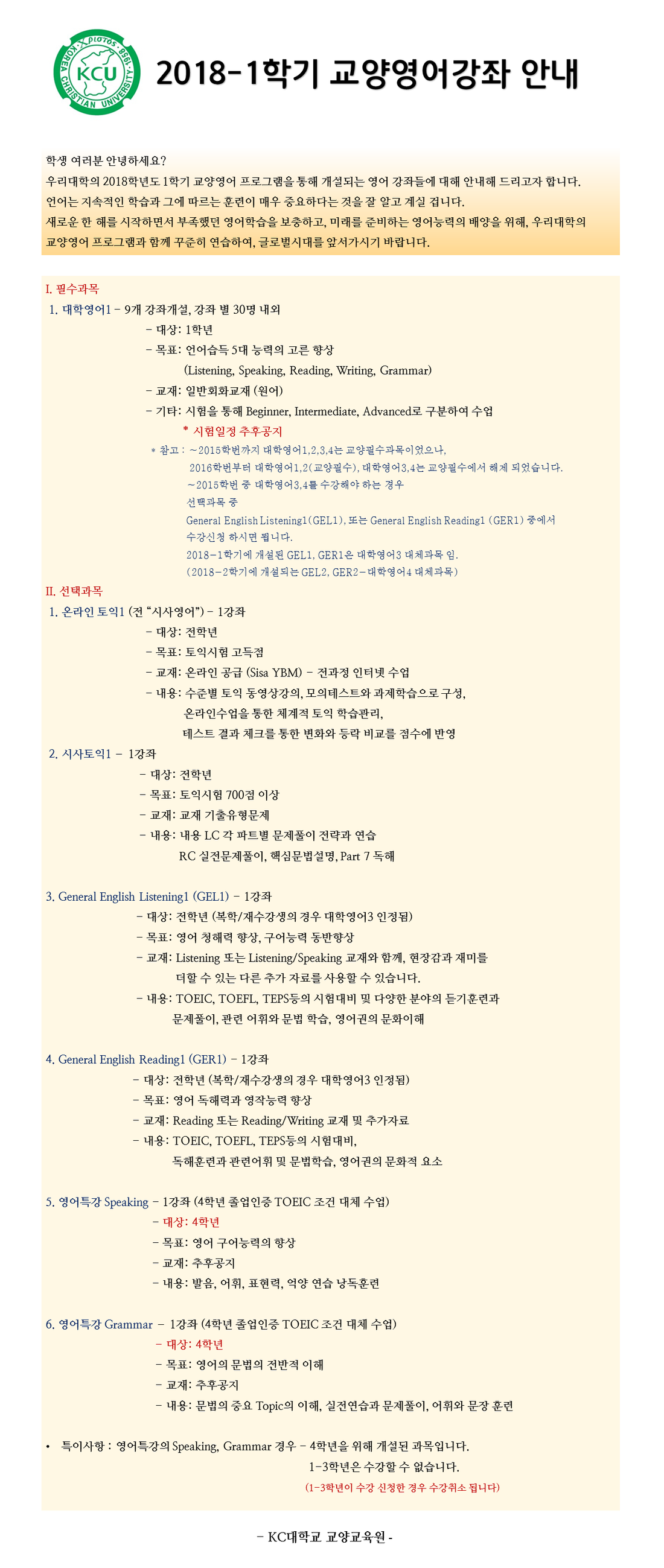 | 제목 | [교양영어] 2018-1학기, KCU 교양영어강좌안내 | ||