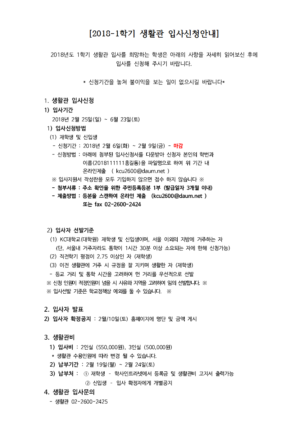 | 제목 | [생활관] 2018년도 1학기 입사 신청안내 | ||