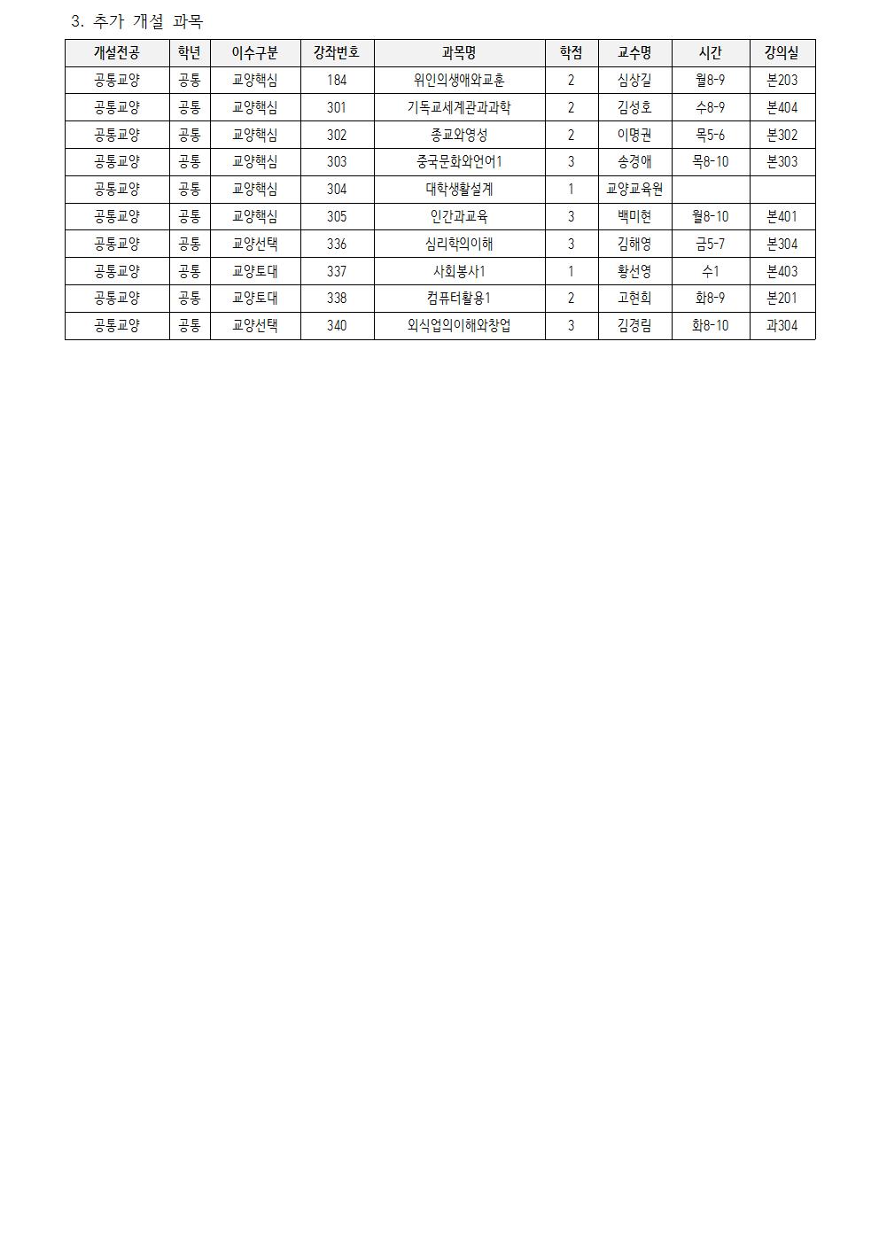[교무처] 2018학년도 1학기 1차폐강 및 수업변동 내역 안내