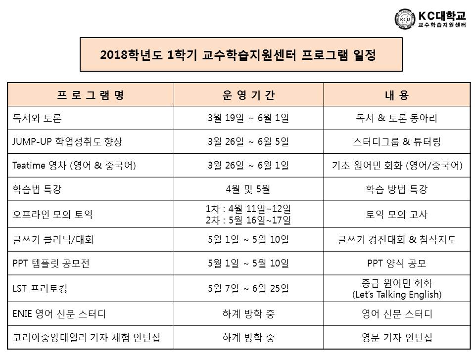 | 제목 | [교수학습지원센터] 2018-1 프로그램 일정 안내 | ||