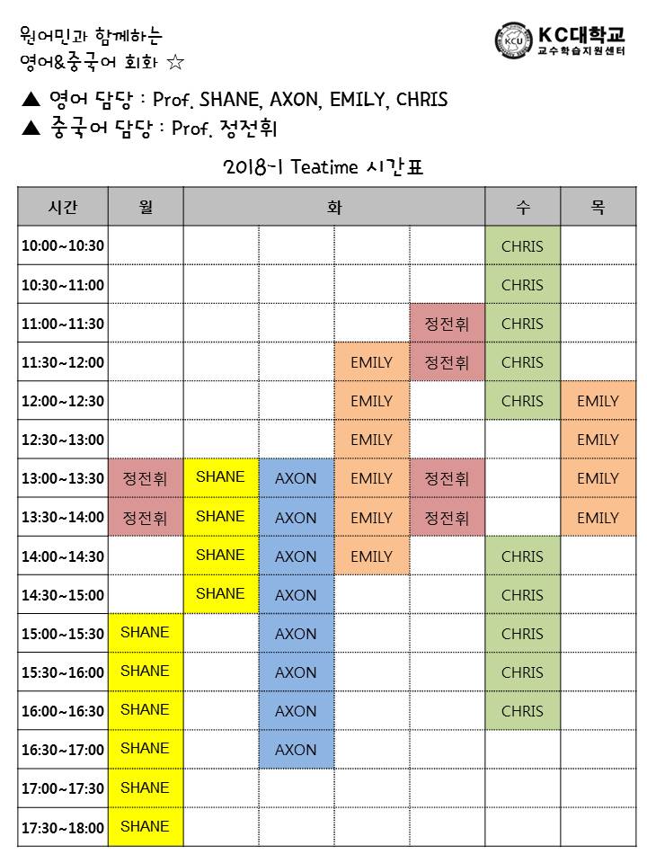| 제목 | [교수학습지원센터] 2018-1 Teatime영차! 프로그램 안내 | ||