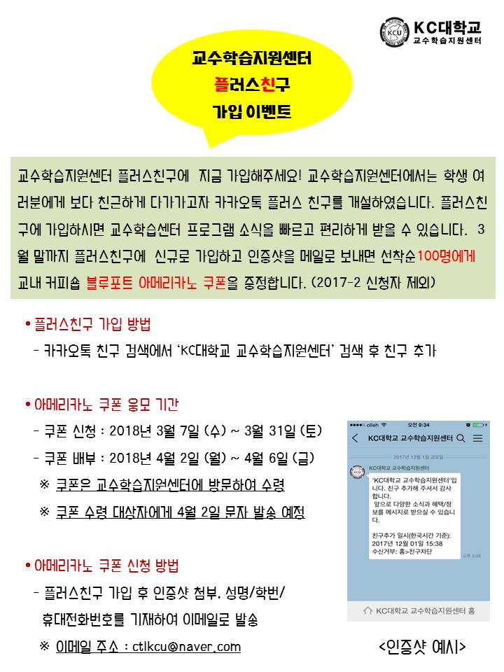 [교수학습지원센터] 플러스친구 가입 이벤트 재안내