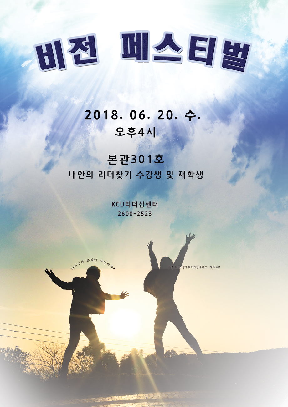 | 제목 | [리더십센터] 2018-1 [비전 페스티벌] 2차 안내 | ||