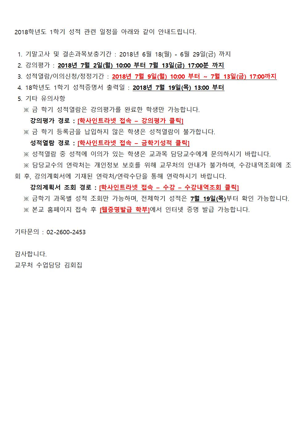 | 제목 | [교무처] 2018학년도 1학기 성적 관련 일정 안내 | ||