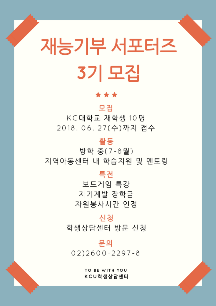[학생상담센터] 재능기부 서포터즈 3기 모집! (6.27까지)