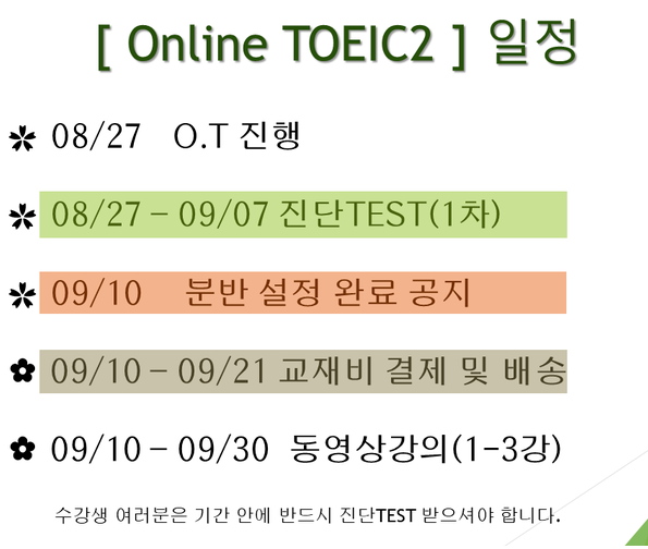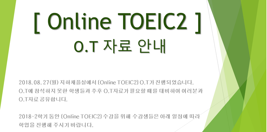 | 제목 | [온라인 토익2] O.T 자료 및 안내 | ||