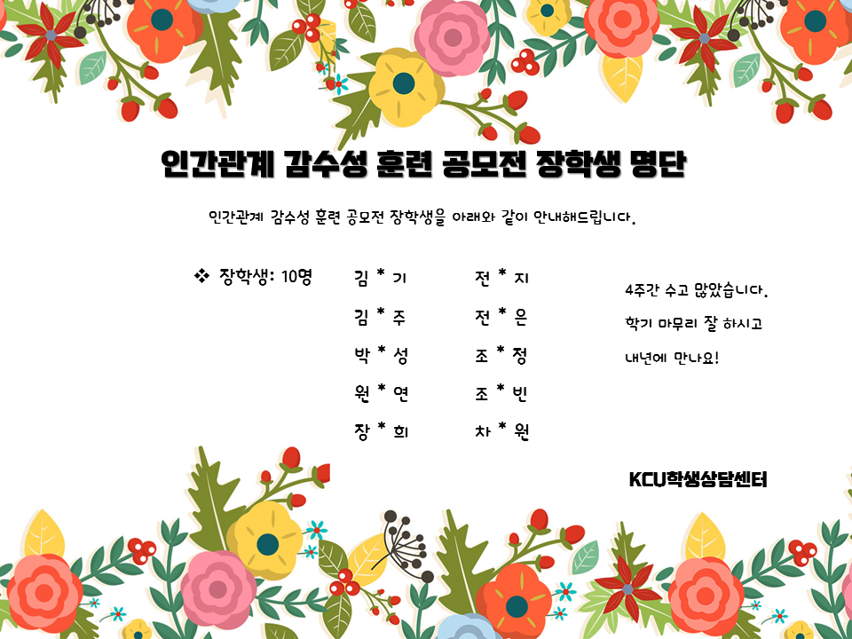 [학생상담센터] 인간관계 감수성훈련 공모전 장학생 안내