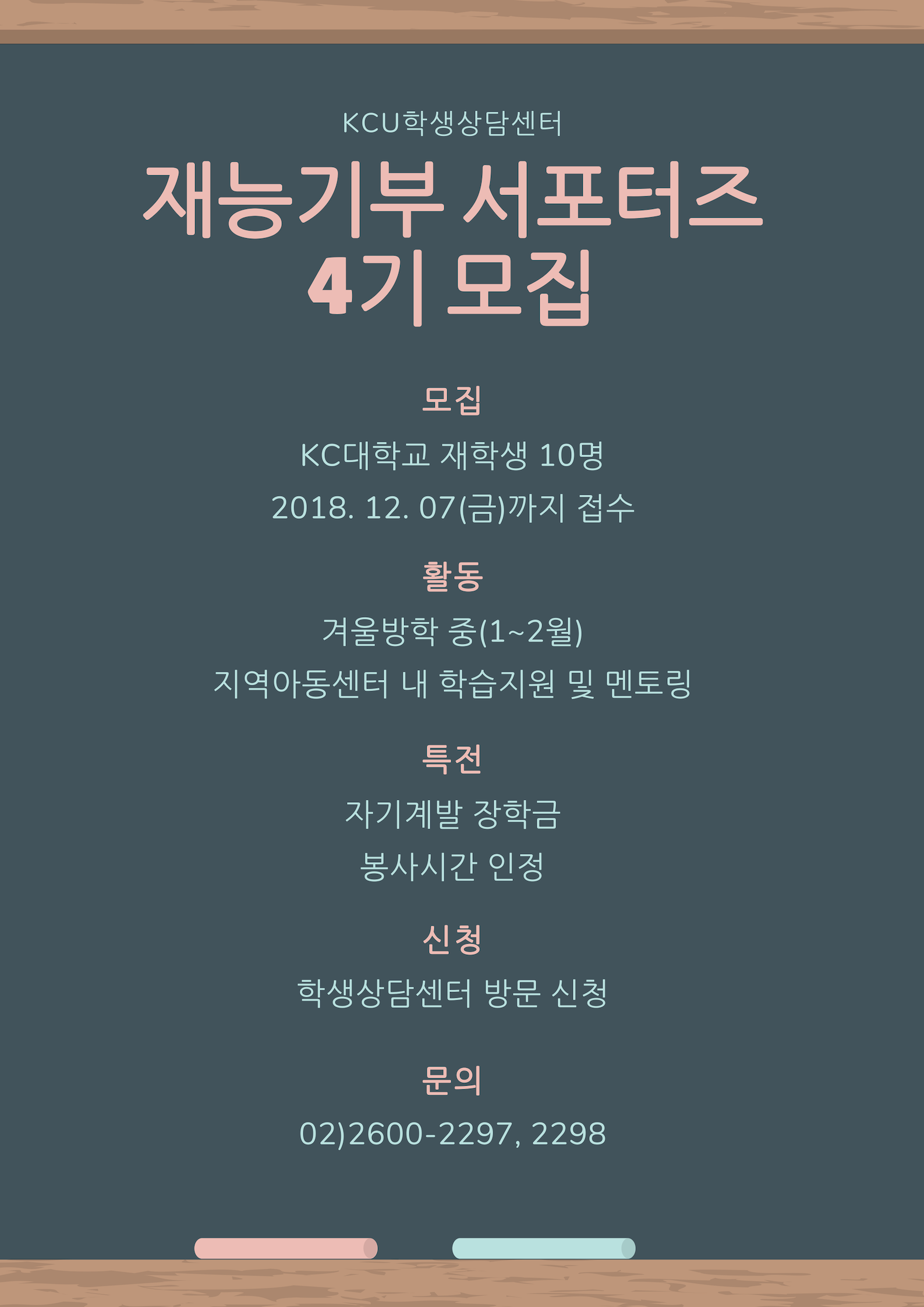 [학생상담센터] 재능기부 서포터즈 4기 모집! (12/7 까지)