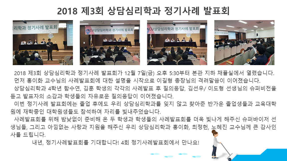 | 제목 | [상담심리학과] 2018 제3회 상담심리학과 정기사례 발표회 이야기 | ||