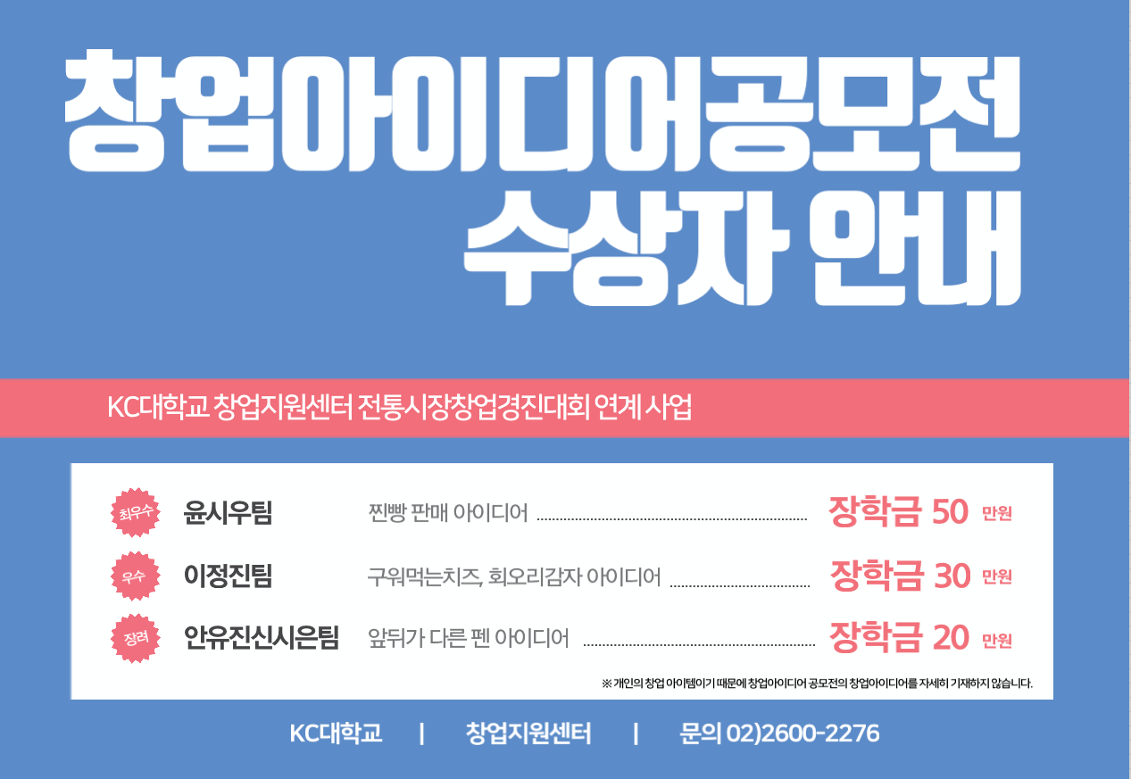 [창업지원센터] 창업아이디어 공모전 수상자 안내