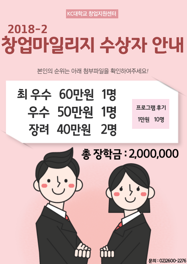 | 제목 | [창업지원센터] 창업마일리지 수상자 안내 | ||