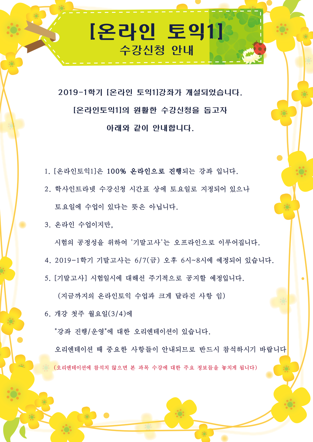 [교양교육원] 온라인토익1 수강신청 2차 안내