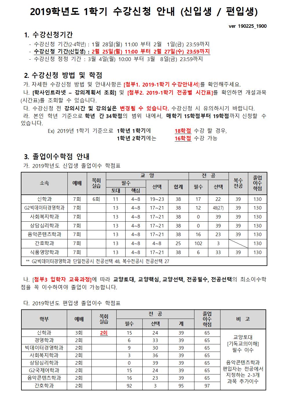 | 첨부파일 | [첨부1]2019학년도 1학기 수강안내서.hwp | ||