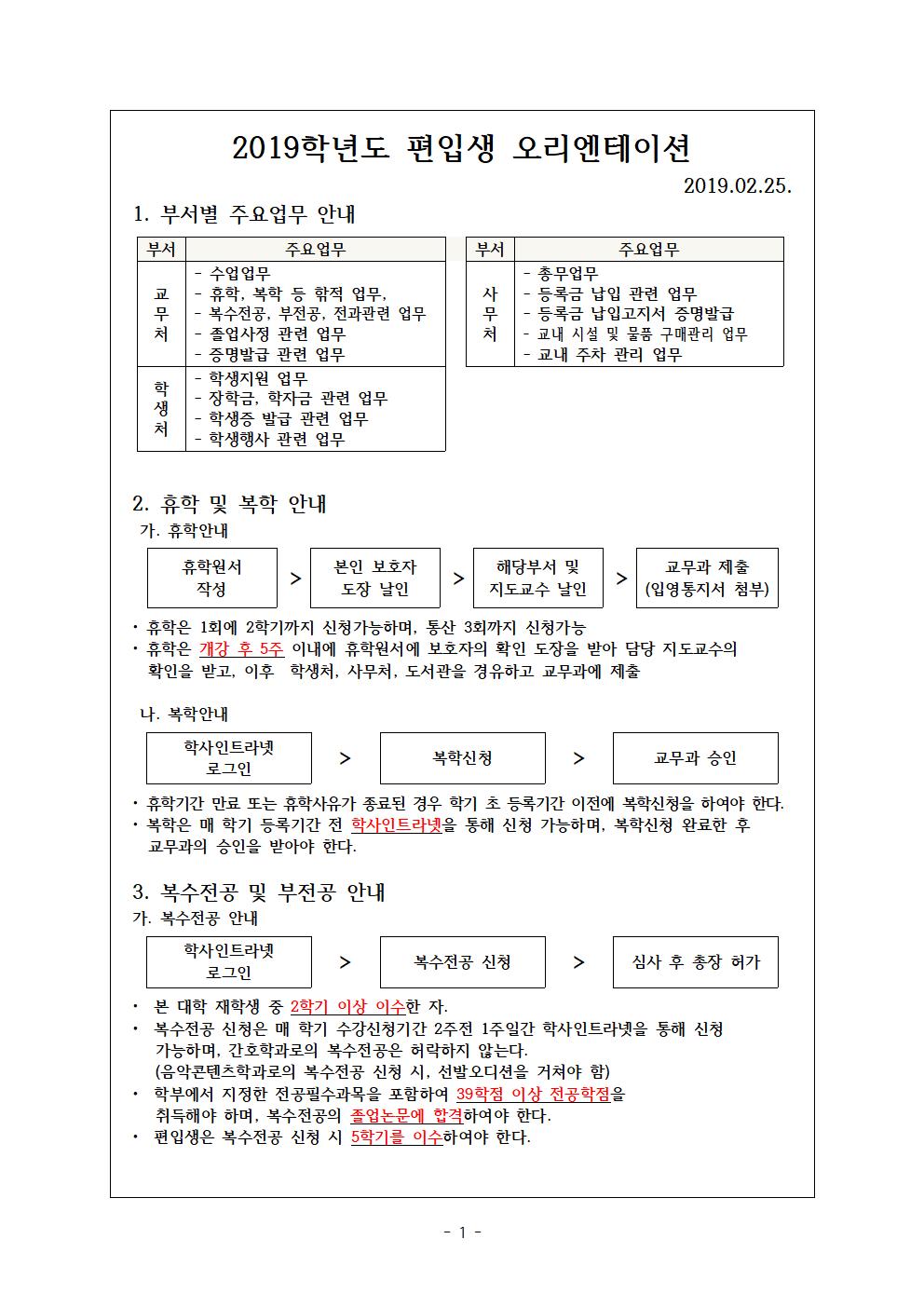 | 제목 | [교무처] 2019학년도 1학기 편입생 오리엔테이션 자료 | ||