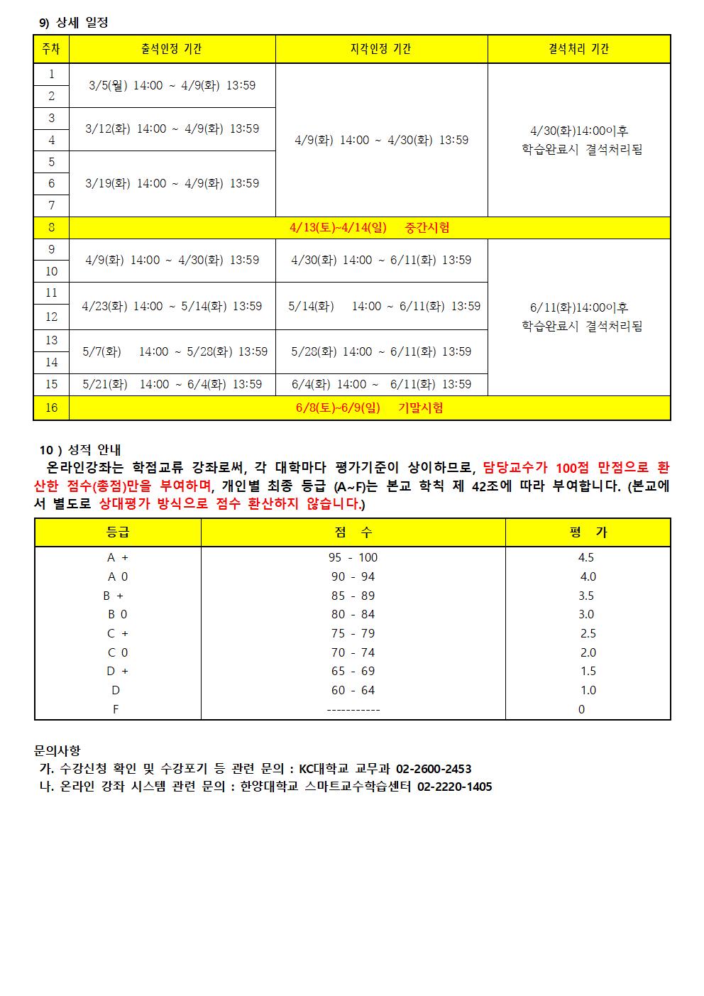 | 첨부파일 | 2019학년도 1학기 온라인 강좌 학사일정.xls | ||