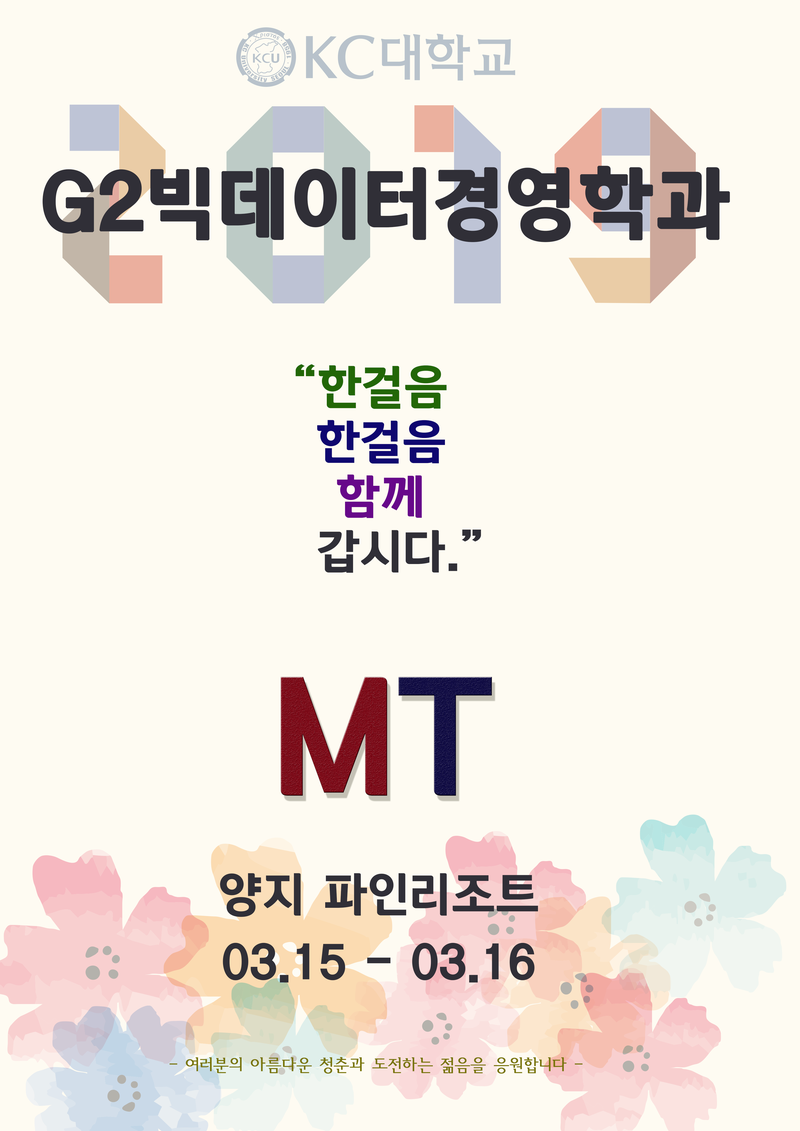 | 제목 | [G2빅데이터경영학과] 2019 MT 안내 | ||
