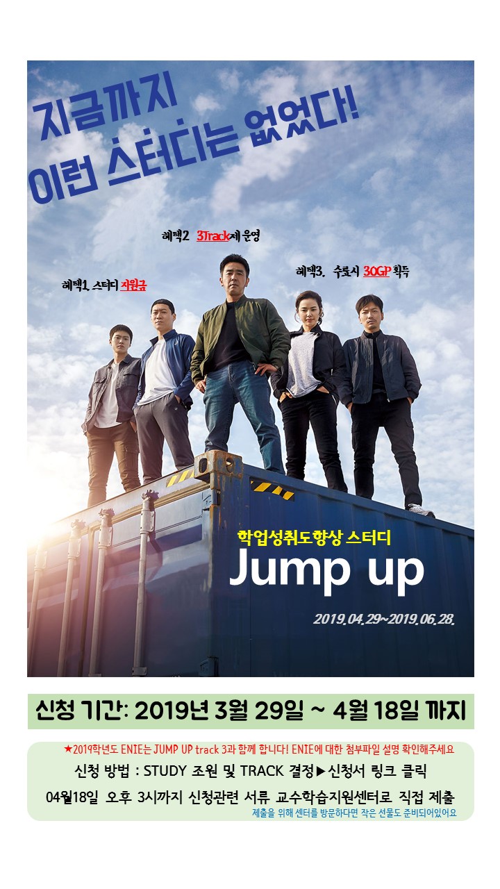 | 제목 | ♥재안내♥[교수학습지원센터] 2019학년도 학업성취도 향상 JUMP UP 참가팀 모집 | ||
