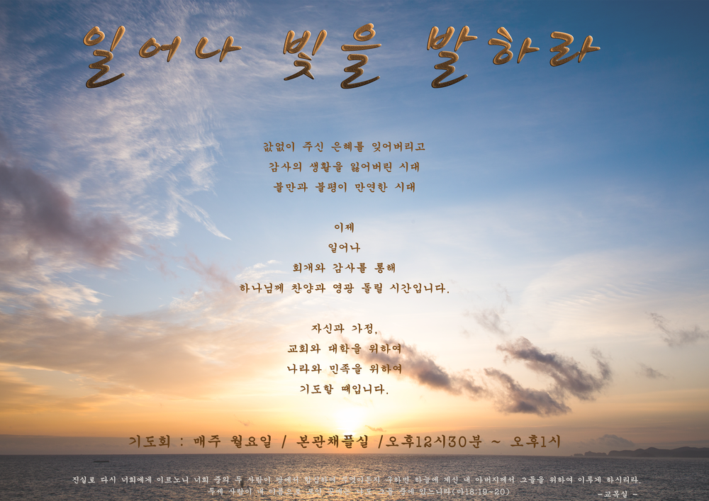 | 제목 | ♣♣[교목실]♣♣ 대학을 위한 기도회 안내 | ||