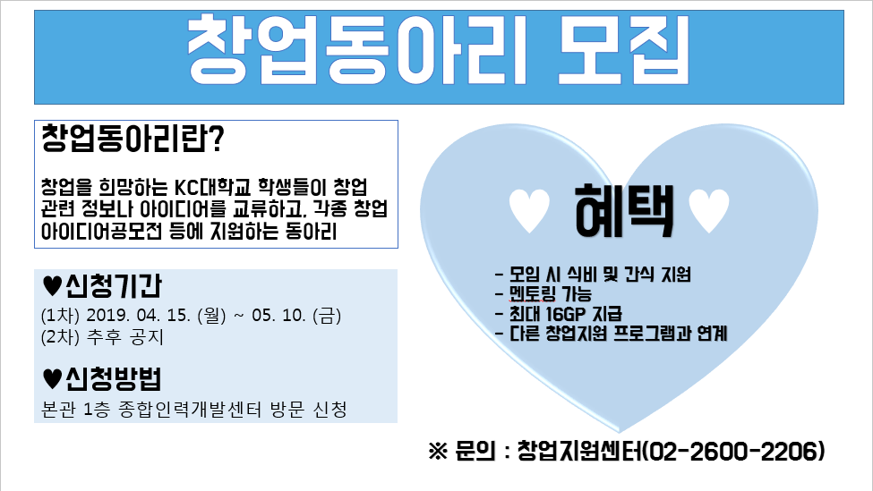 [창업지원센터] 2019창업동아리 모집 안내