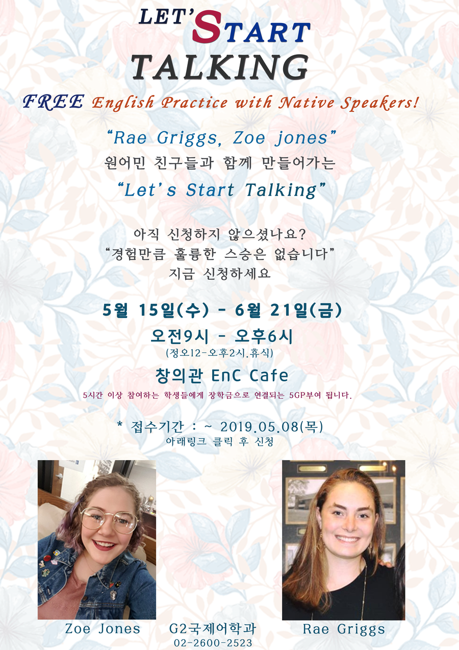 | 제목 | [교수학습지원센터] " Let's Start Talking" 신청 안내 | ||