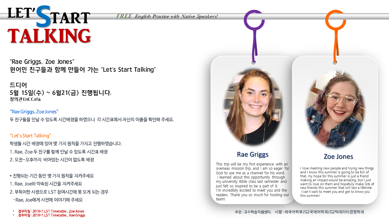 | 첨부파일 | ★ 2019-1 LST Timetable_Zoe Jones.pdf | ||