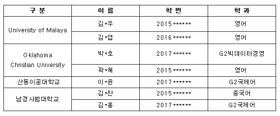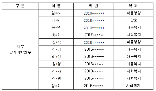아래와 같이 2019학년도 1차 교환학생 및 단기어학연수 프로그램 선발자 명단을 공지합니다.