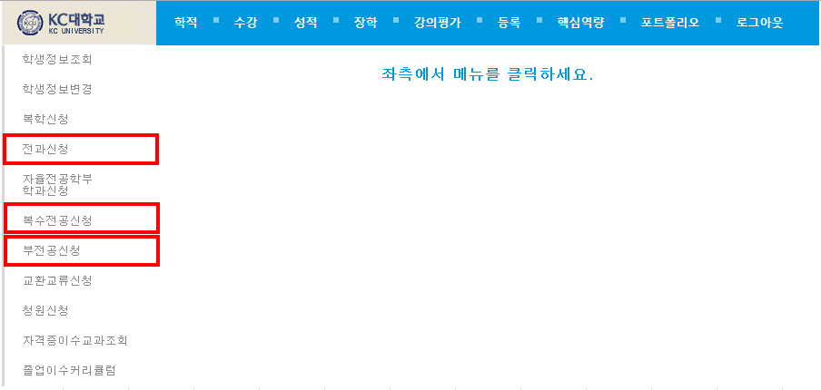 1. 신청기간 : 2019년 7월 22일(월) - 7월 26일(금) 2. 신청방법 : 학사인트라넷 - 복수전공/부전공/전과신청