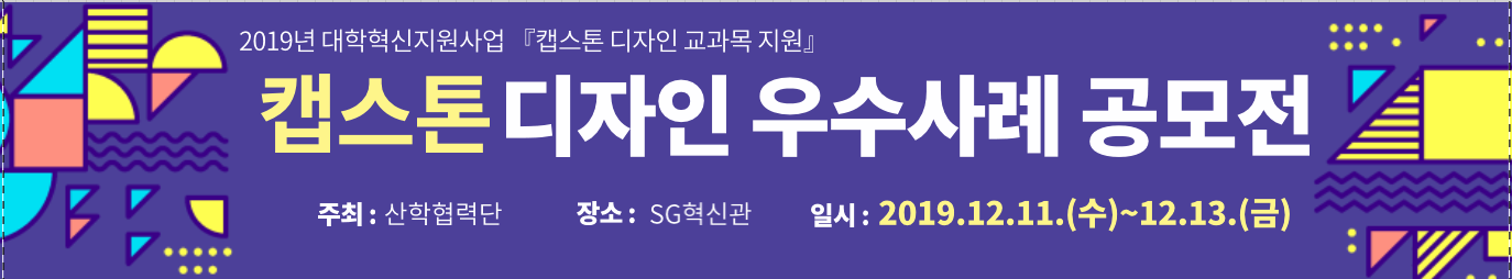 | 제목 | [혁신][산학협력단] 캡스톤디자인 우수사례 공모전 및 전시회 안내 | ||