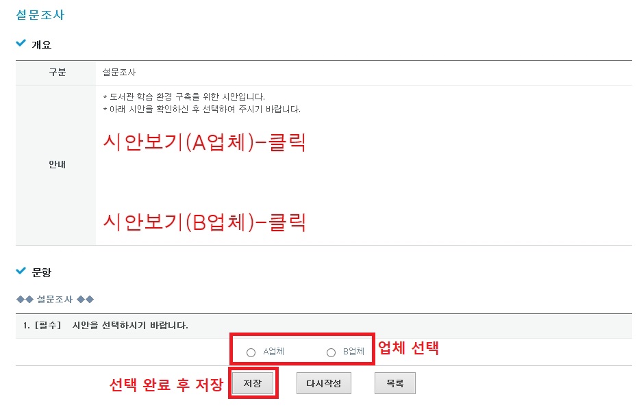 2. 설문기간 : 2020.01.10.(금) ~ 2020.01.16.(목) 3. 설문방법 : 학사 인트라넷에 접속하여 업체별(A,B업체) 제안한 입체 평면도를 보시고 선호하는 곳에 선택해 주시기 바랍니다. 학사인트라넷 바로가기 : http://intra.kcu.ac.kr/kcu/user/login.do