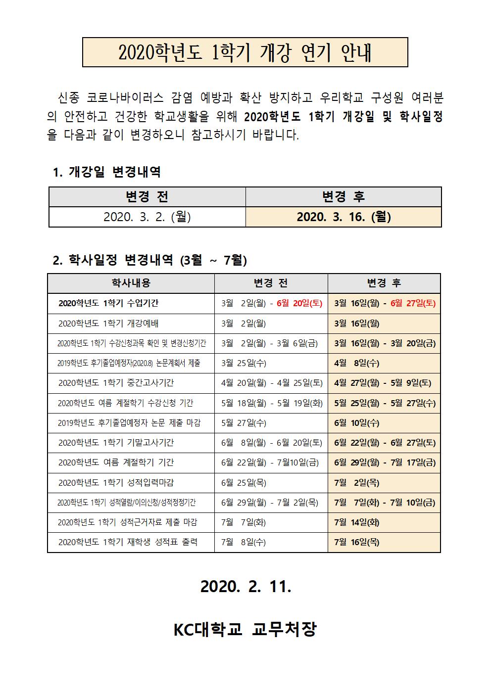 | 제목 | 2020학년도 1학기 개강 연기 안내 | ||