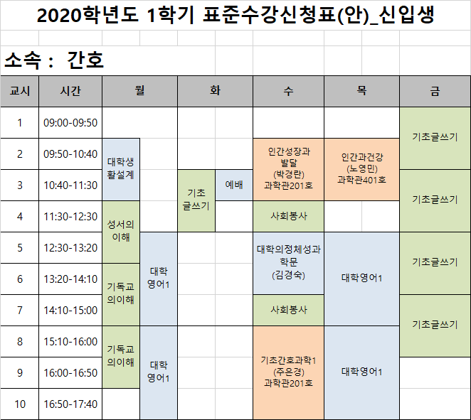 게시물 상세보기 - 제목, 등록일, 조회, 작성자, 내용으로 구성 제목 2020년 간호학과 신입생 시간표 공지사항 입니다. 등록일 2020-02-21 조회 3279 작성자 간호학과