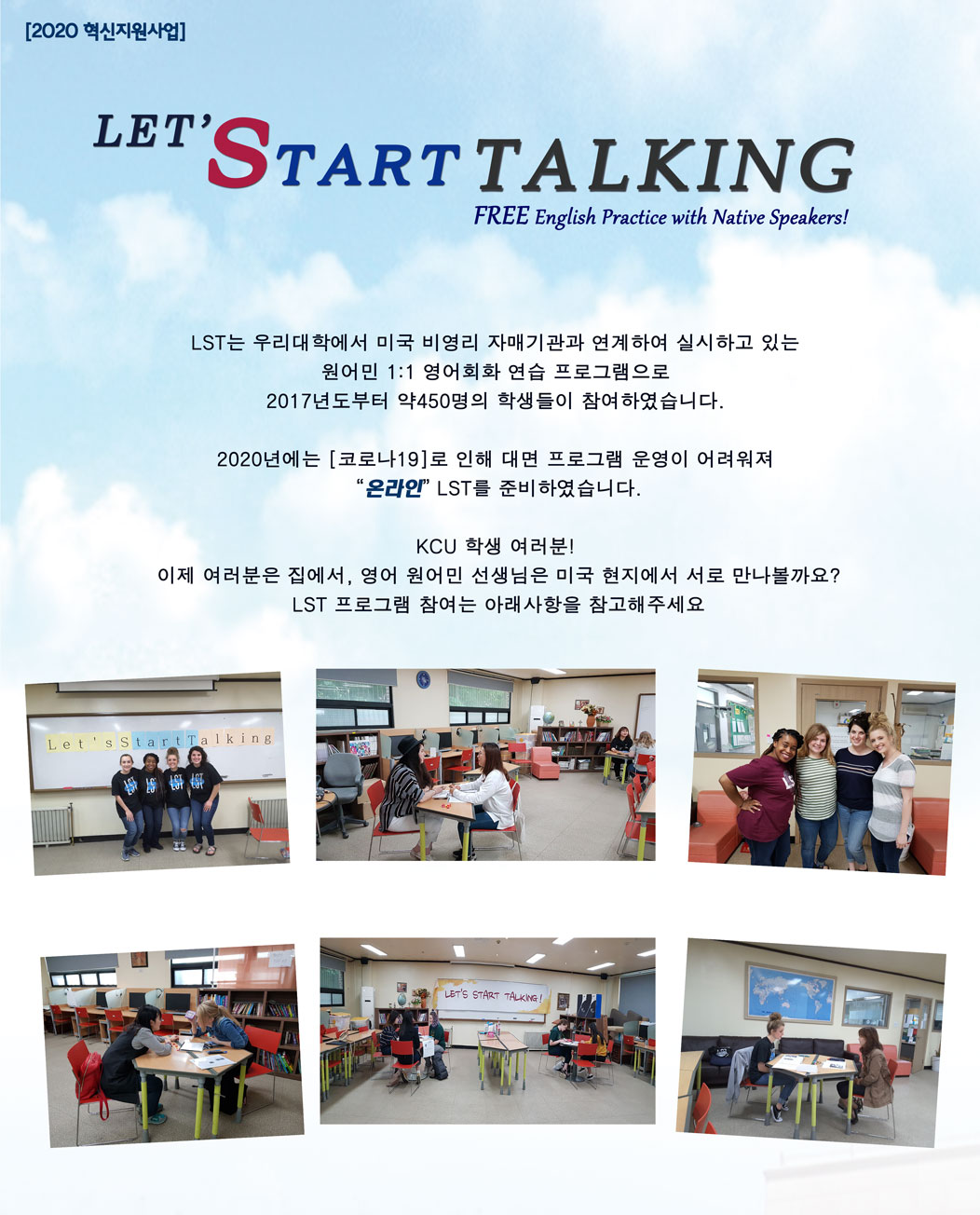 | 제목 | [교양교육원]Let's start Talking(Free Talking) 참가 안내 | ||