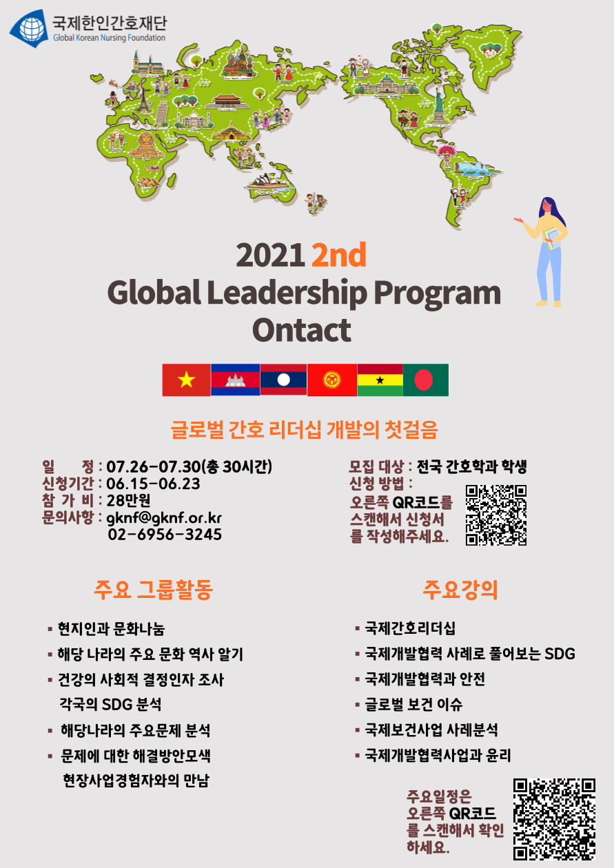 본 재단이 주관하는 2021년 Global Leadership Program을 다음과 같이 안내하오니 많은 참여 부탁드립니다.