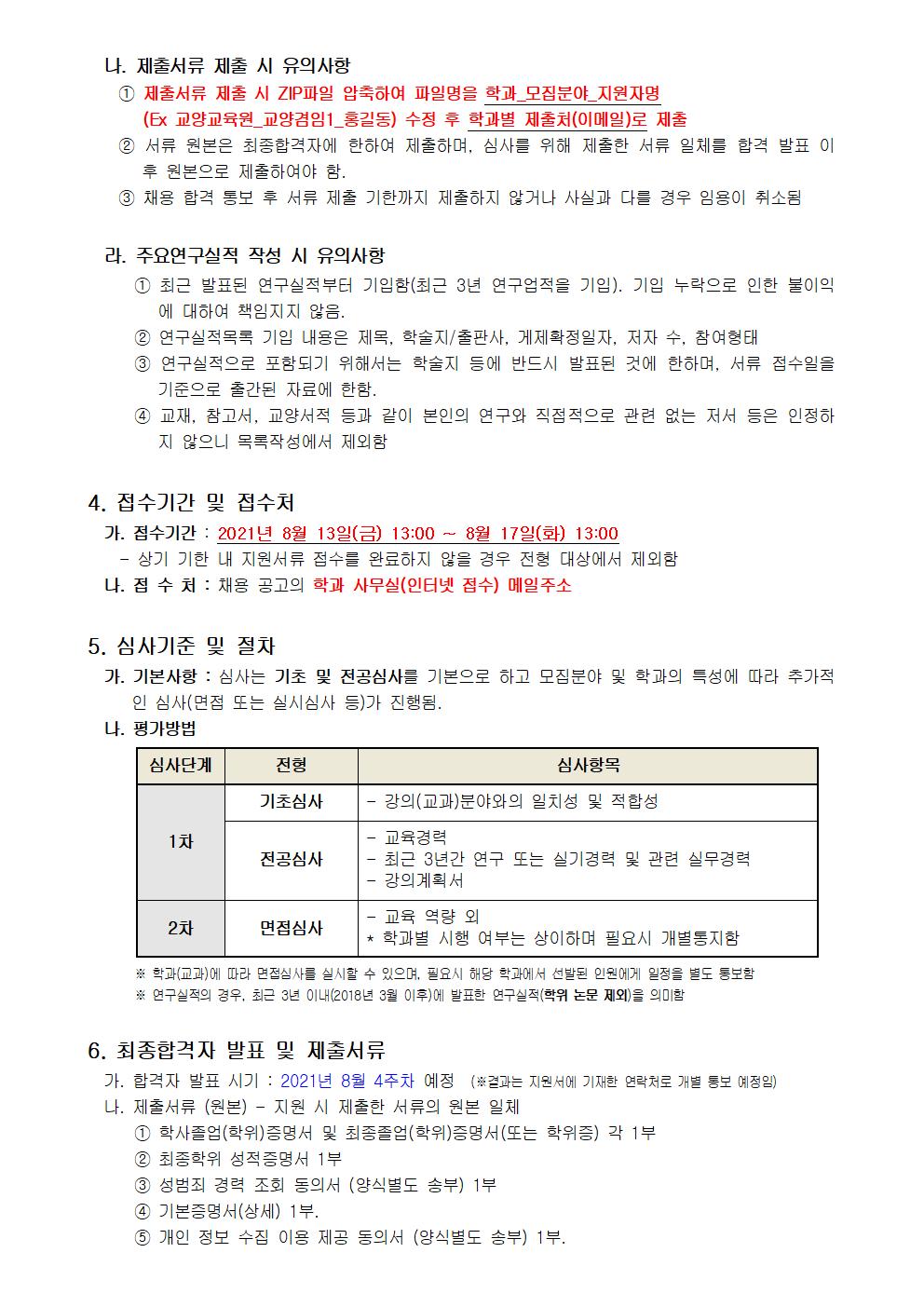 | 제목 | 2021학년도 2학기 케이씨대학교 겸임/초빙교원 공개채용 2차 공고 | ||