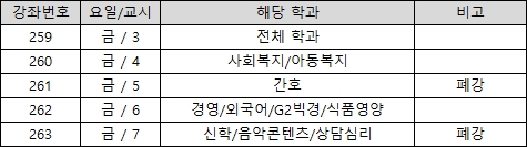 단, 2020~2021학년도에는 상반기 졸업예정자 중 해당 교과목을 이수하지 못하여 졸업하지 못하는 학생들로 인하여 예외적으로 상반기에 개설해드린 바 있습니다.