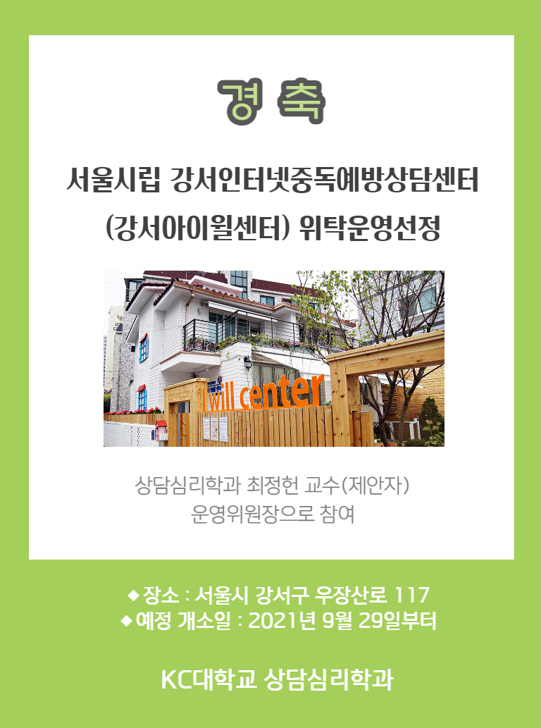 서울시립 강서인터넷중독예방상담센터(강서아이윌센터) 위탁운영선정