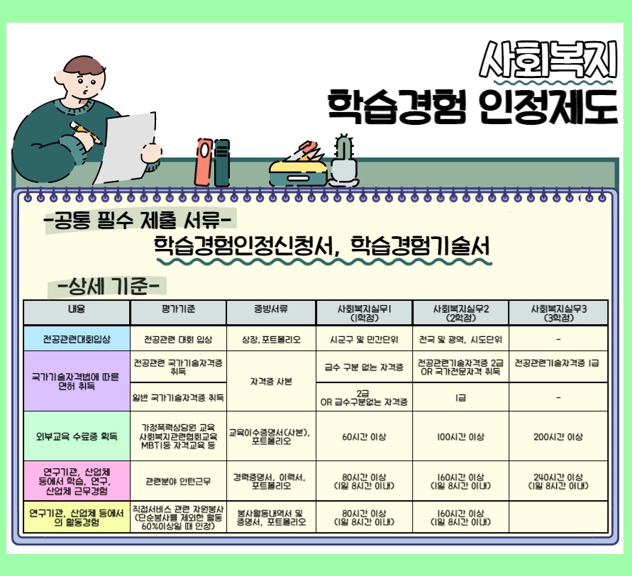 5. 자세한 사항은 사회복지학과 학습경험학점인정제 설명회LMS (https://eclass.kcu.ac.kr/course/view.php?id=1198) 를 참고해주시기 바랍니다.