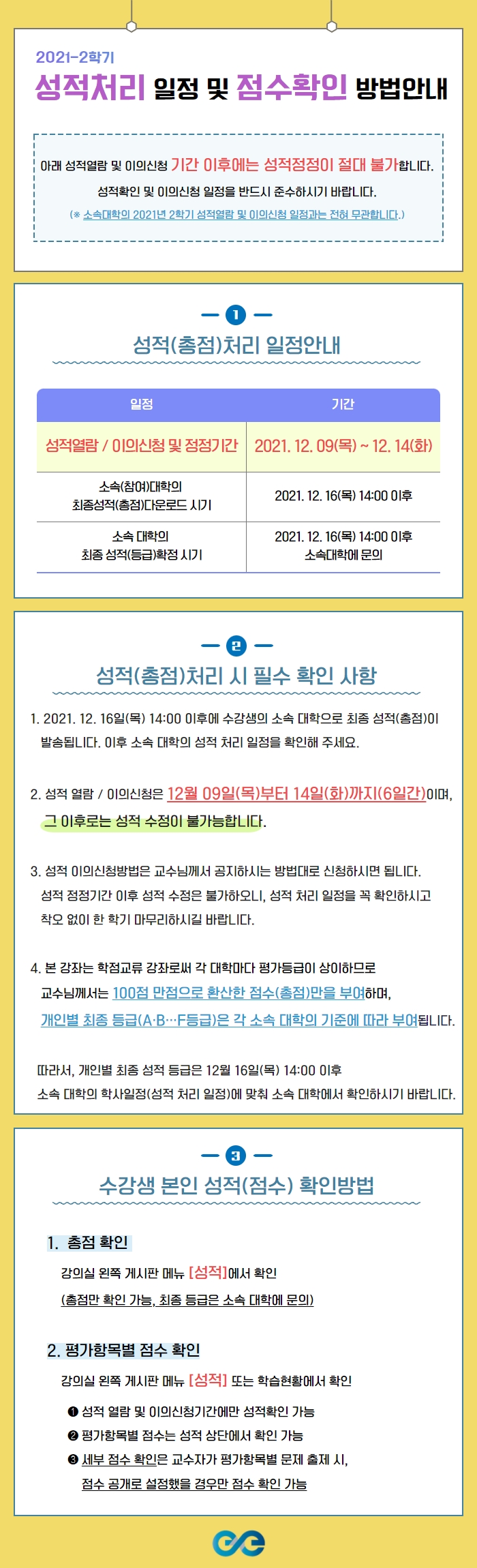 [교무처] 2021학년도 2학기 온라인 컨소시엄 과목 성적 처리 일정 안내