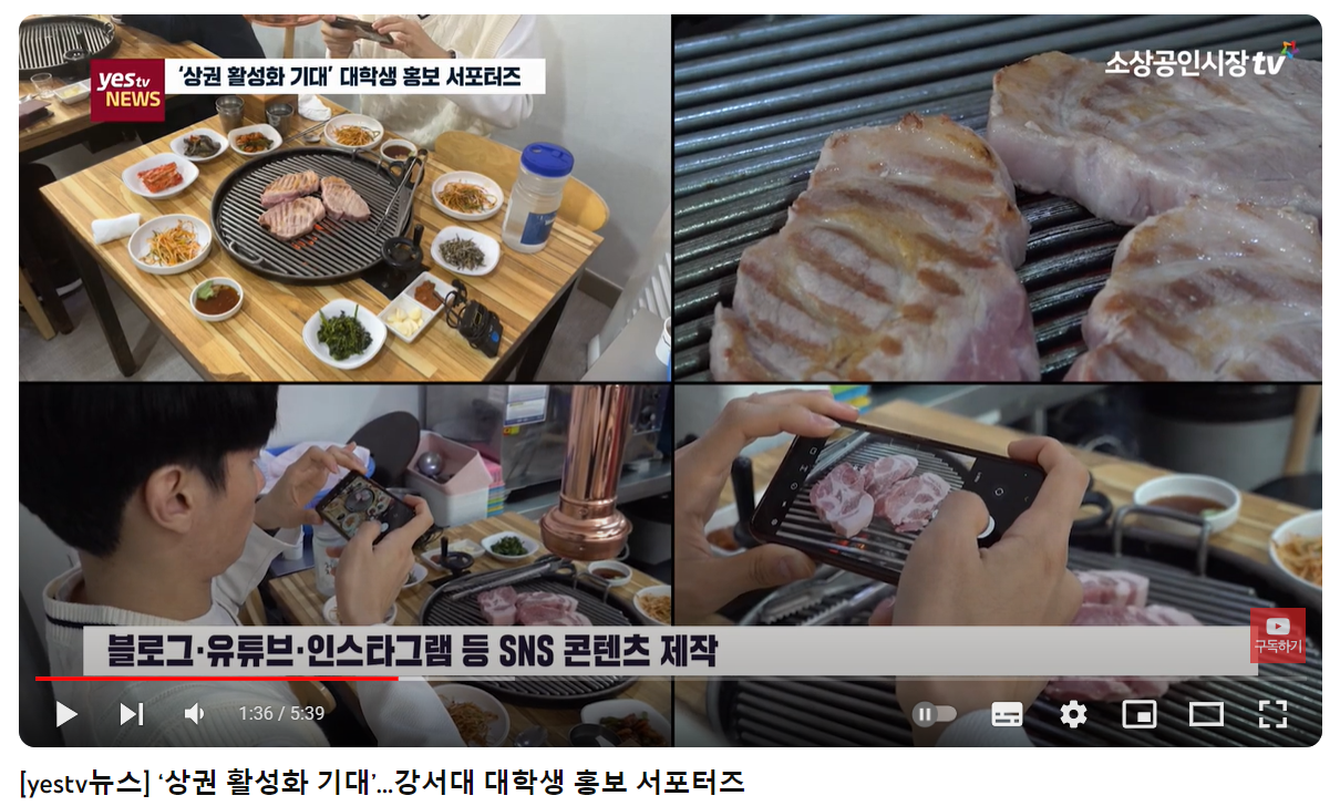 『상권활성화 기대, 강서대 대학생 SNS 홍보 서포터즈가 양촌향교 상권에 출동하다.』 https://www.youtube.com/watch?v=8Djico3Mg1k (☜ 여기 클릭) (23.10.10방송)