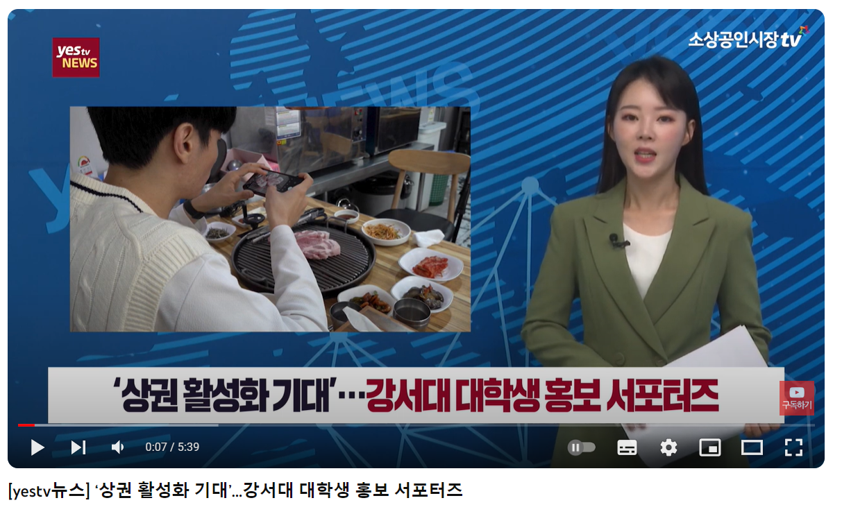 | 제목 | [yestv뉴스]상권 활성화기대_강서대 대학생 홍보서포터즈 | ||