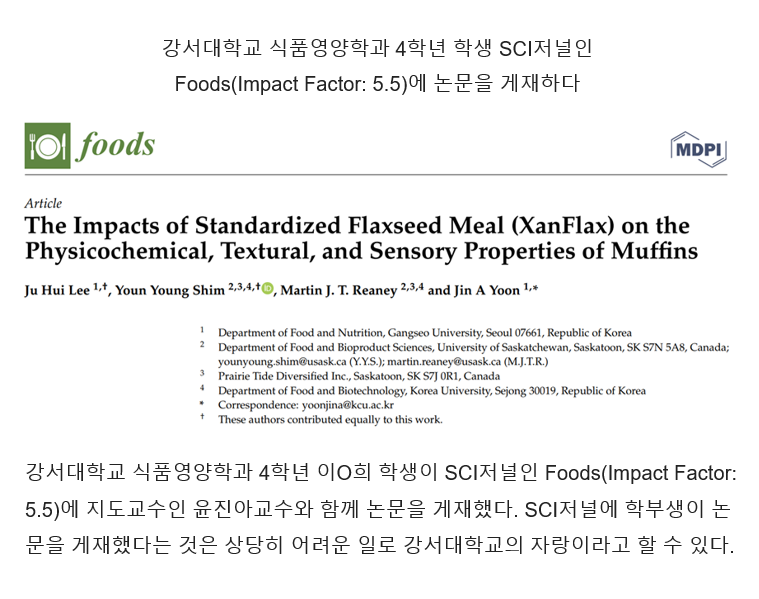 | 제목 | 식품영양학과 4학년 SCI저널인 Foods(Impact Factor: 5.5)에 논문 게재 | ||