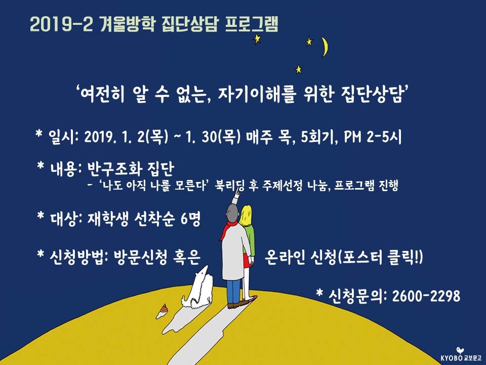 | 제목 | [혁신]19-2 겨울방학 자기이해 집단상담 안내 | ||
