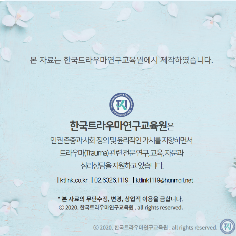 | 이전글 | [마음건강] 너무 늦지 않게 가벼운 마음으로 정신건강 전문가를 만나는 방법 | 2020-04-20 |