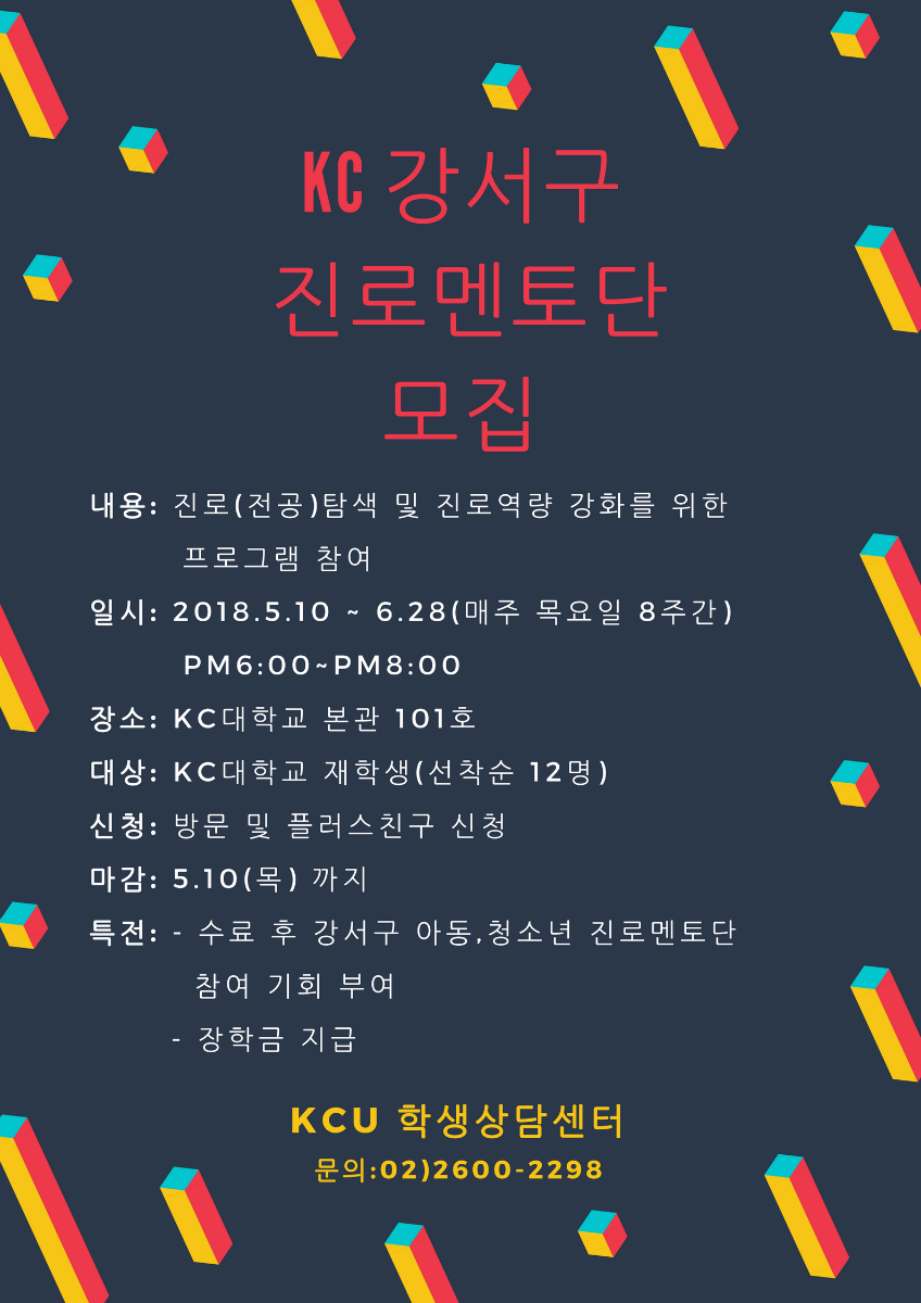 | 제목 | KC강서구 진로멘토단 모집 | ||